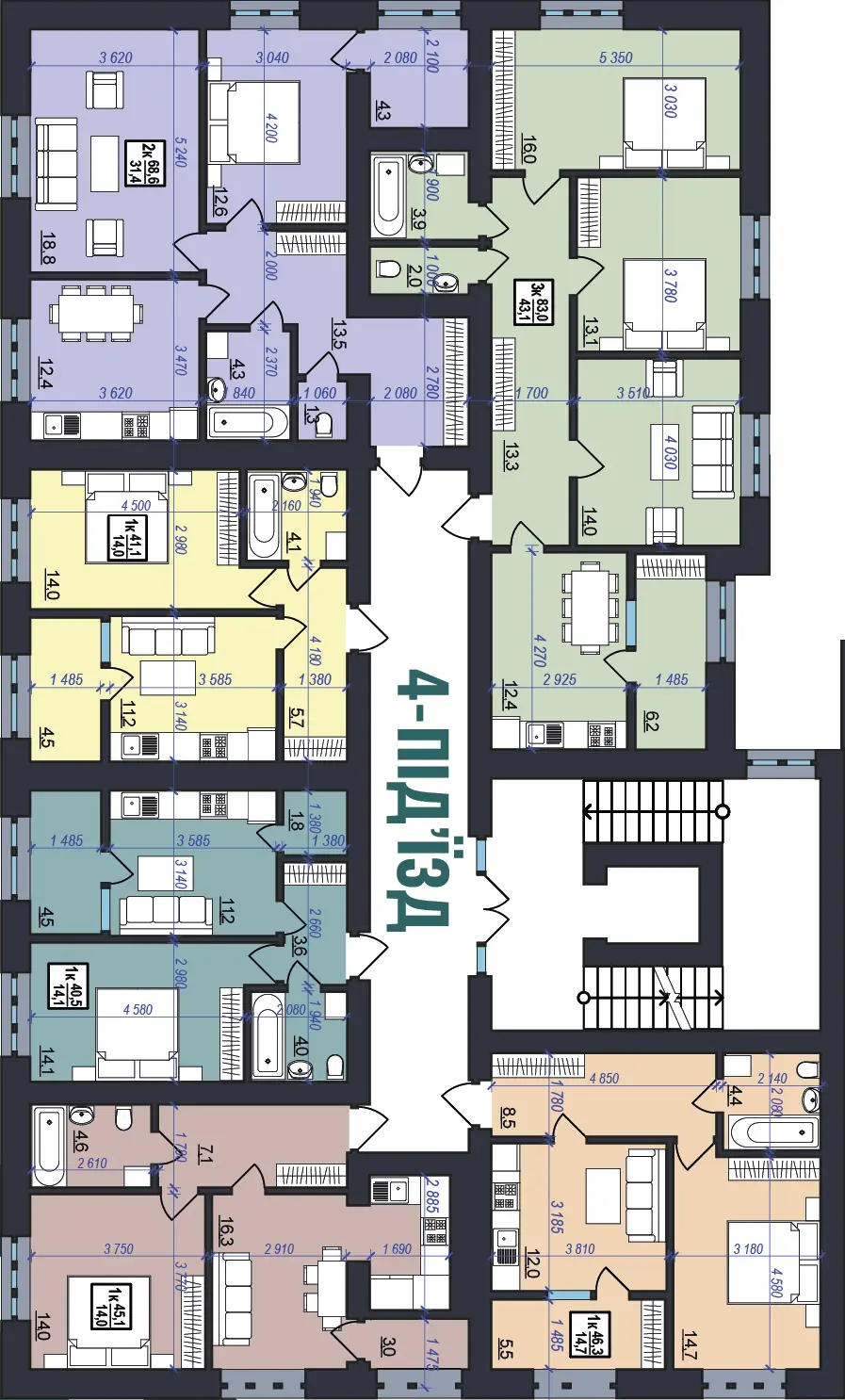 Високоякісний, тихий та безпечний ліфт світового класу «Schindler», що характеризується високим рівнем комфорту та безпеки, Німеччина. Прохідна кабіна (вхід в кабіну ліфта з двох сторін).